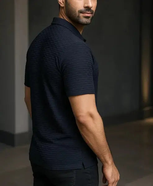 Step into refined summer style with our Men’s Navy Blue Popcorn Lekra Shirt, expertly crafted from premium popcorn lekra fabric for a unique textured finish and exceptional comfort. Featuring a modern Cuban collar and contrasting white buttons, this shirt effortlessly blends contemporary flair with timeless sophistication—making it the perfect choice for both casual outings and stylish gatherings.